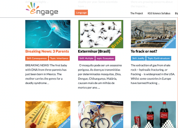 “Engage”网站(https://www.engagingscience.eu/en/)上有许多已经开展的一些项目。 “Engage”项目是由欧洲资助的课题,在几年前完成了。在这个课题中,研究者关注教师培训,设计与中小学生一同使用的单元,或是和职前教师、在职教师一同使用。所有单元都是从新闻中出现的社会性科学议题开始的。我们有在40分钟内实施的短期活动,也有需要3到4节课来实施的更长的活动,即教学序列。你可以下载每一个项目的课程计划和幻灯片。