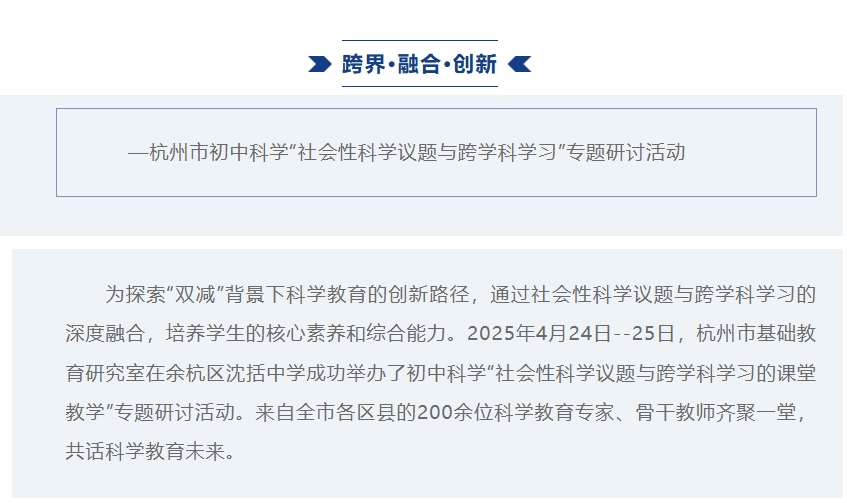 Transcending Boundaries·Integration ·Innovation — Hangzhou Junior High School Science Seminar on “Socio-Scientific Issues and Interdisciplinary Learning”