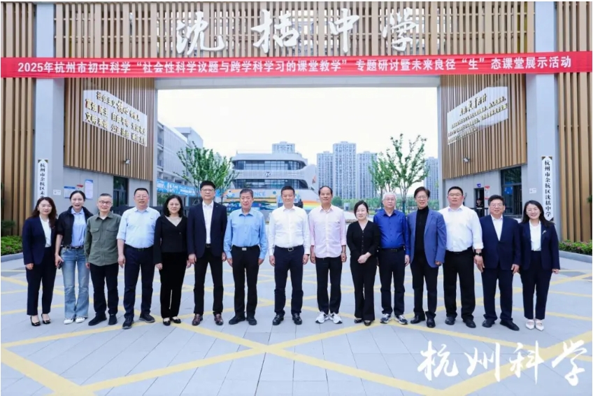 To explore innovative pathways for science education under the “Double Reduction” policy and to foster students’ core literacy and comprehensive abilities through the deep integration of socio-scientific issues and interdisciplinary learning, the Hangzhou Basic Education Research Office successfully held the Junior High School Science Thematic Seminar on “Classroom Teaching of Socio-Scientific Issues and Interdisciplinary Learning” at Shen Kuo Middle School in Yuhang District from April 24 to 25, 2025. Over 200 science education experts and backbone teachers from various districts and counties in the city gathered to discuss the future of science education.