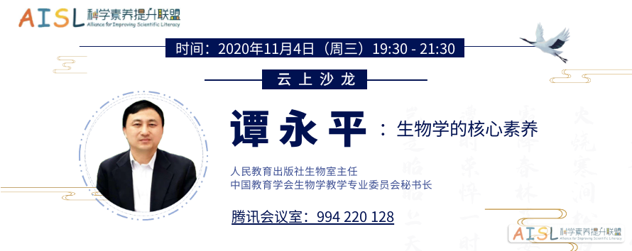 当前位置: 首页 | Home » 研修平台 | Learning » [SSI Learning] 第六期沙龙预告:谭永平——生物学的核心素养 Notice for the sixth cloud salon: Yongping Tan’s understanding of biology core competencies 作者: 发布时间: 2020-10-222020-10-22 浏览次数: 次