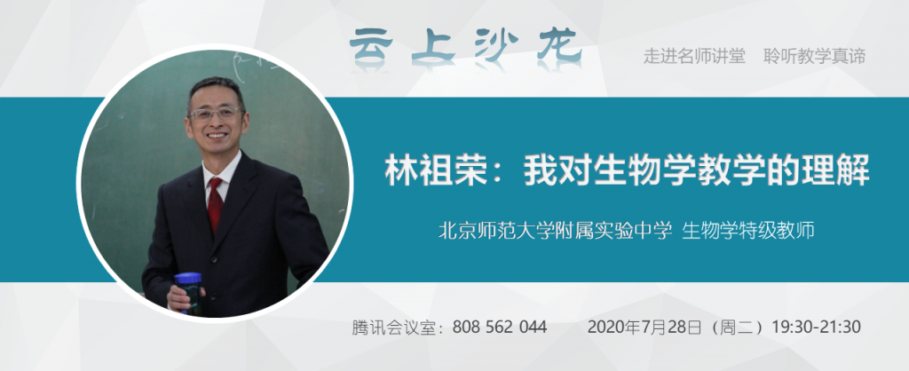 当前位置: 首页 | Home » 研修平台 | Learning » [SSI Learning] 第三期沙龙预告:林祖荣——我对生物学教学的理解 Notice for the third cloud salon: Special-ranked teacher Zurong Lin’s biology teaching 作者: 发布时间: 2020-07-072020-07-07 浏览次数: 次